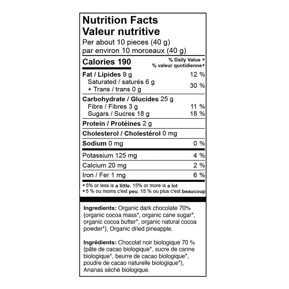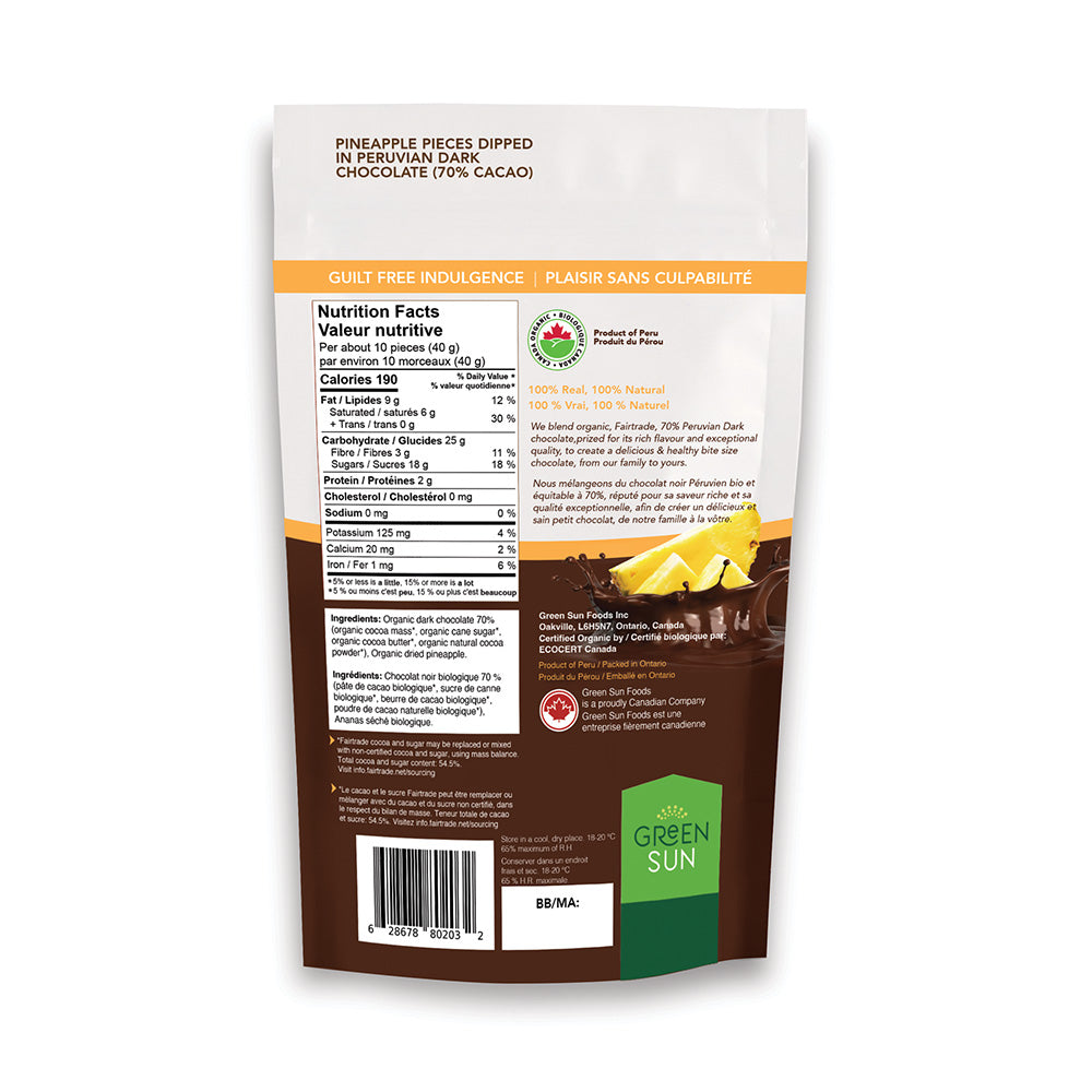 - Crafted with real pineapple and Peruvian 70% dark chocolate
