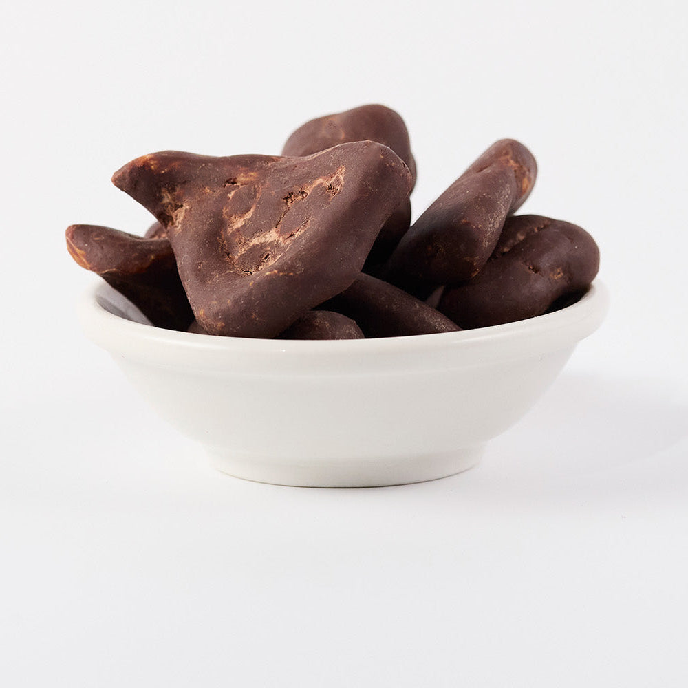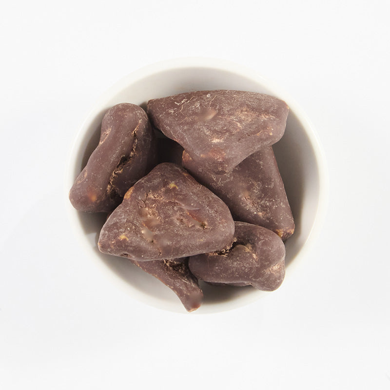 Tangy dried pineapple coated in rich Peruvian 70% dark chocolate — zesty, tropical, and irresistibly snackable.